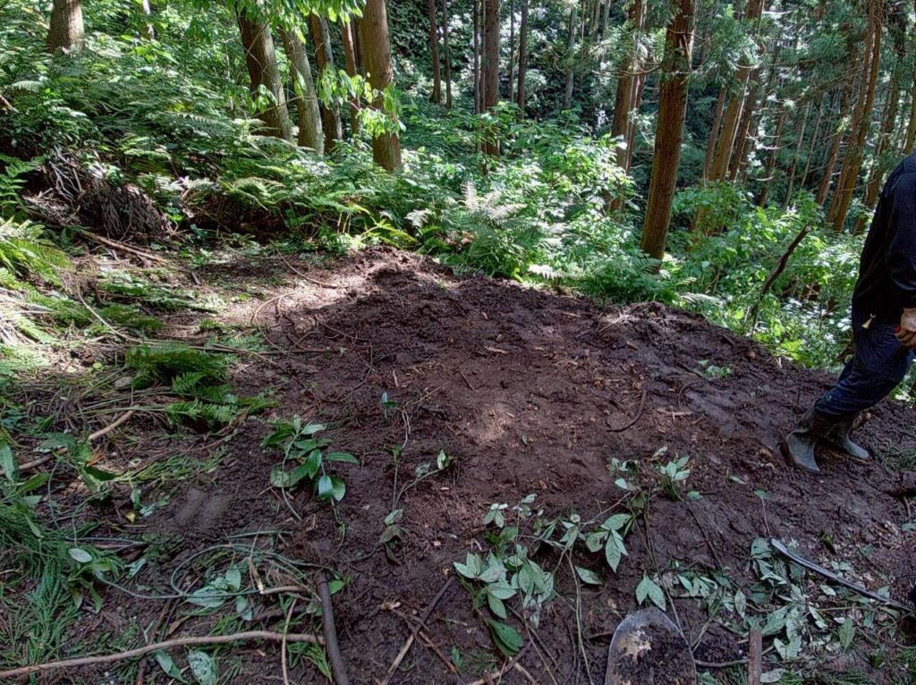 現場で解体・分解して、長いものは細かく切り、背負子を担いで下山