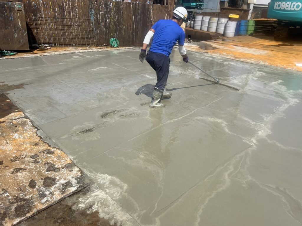 鉄板の下にコンクリートを敷き直す工事で、作業風景を見学していましたが、