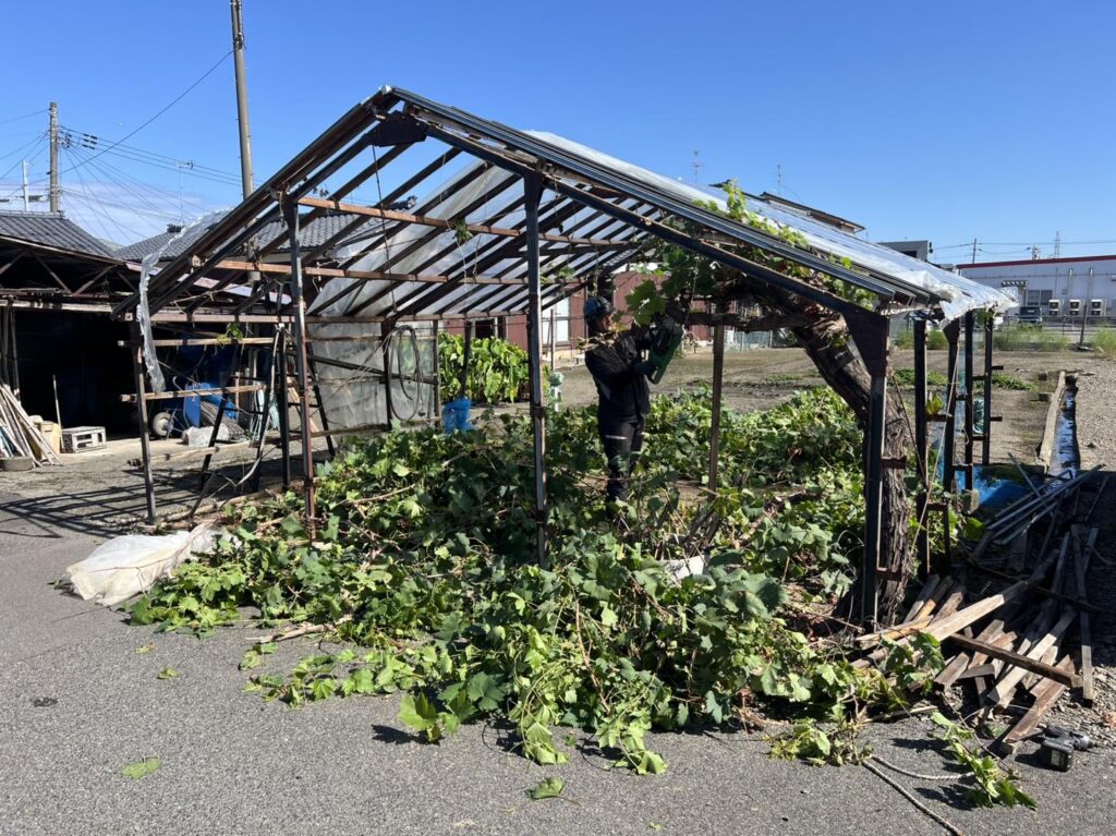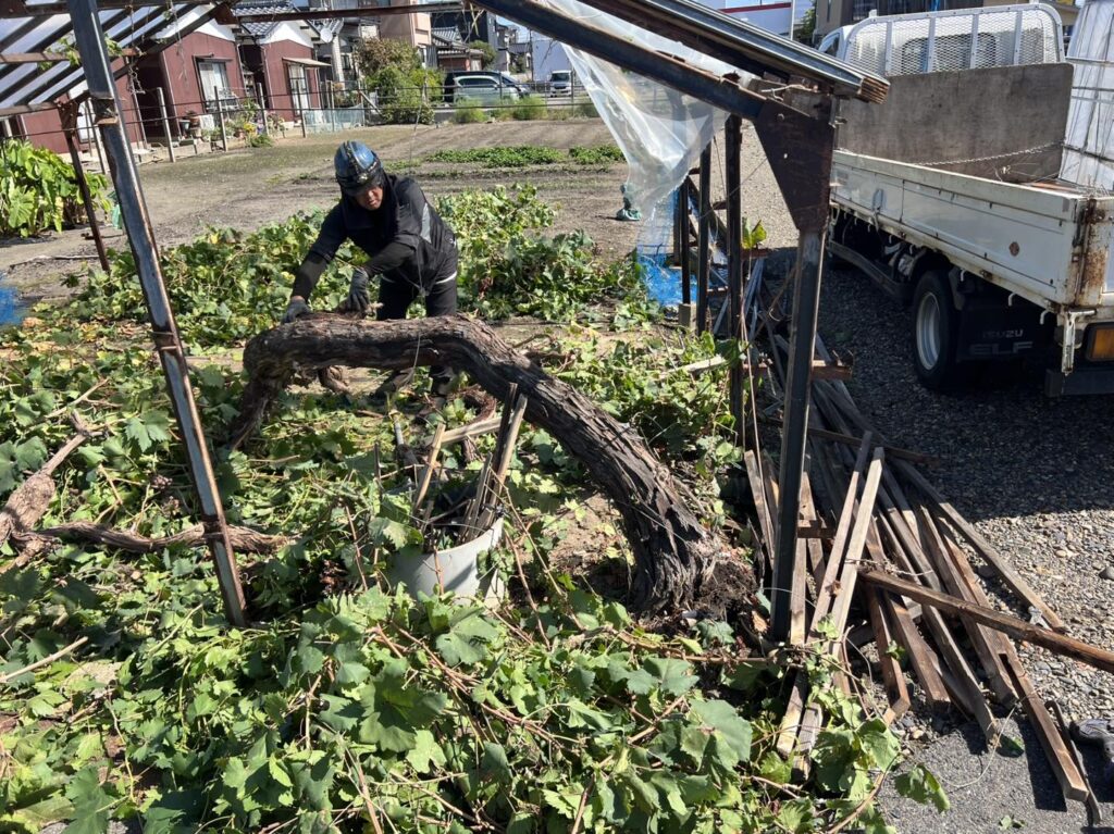 ぶどうの木の伐採及び抜根、ハウスの解体やります