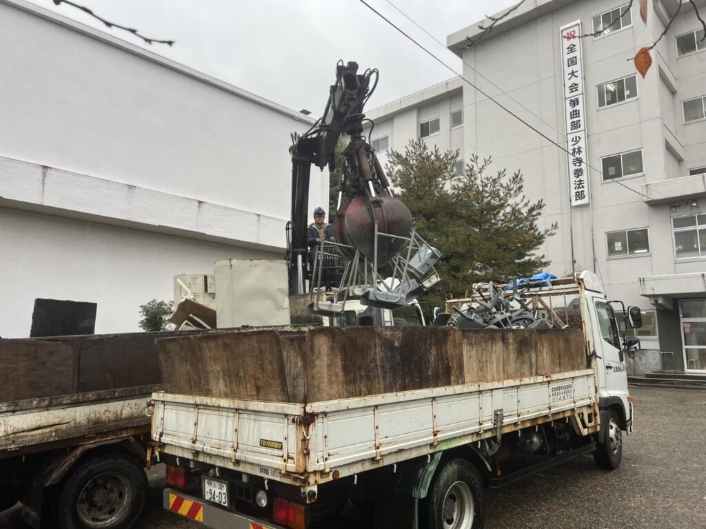 中から運び出す作業もある場合は大掛かりな仕事になりますが、全部表に出しておいていただけるなら機械付きのトラックでサクッと終わります